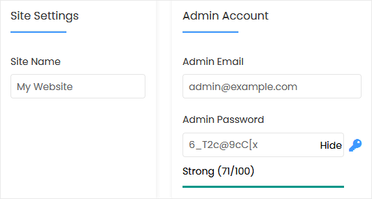 • Admin Email: Your e-mail address.