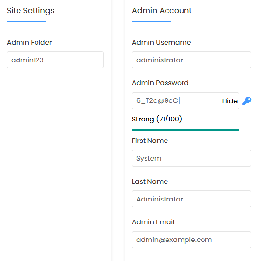 • Admin Folder: You can leave this as it is.